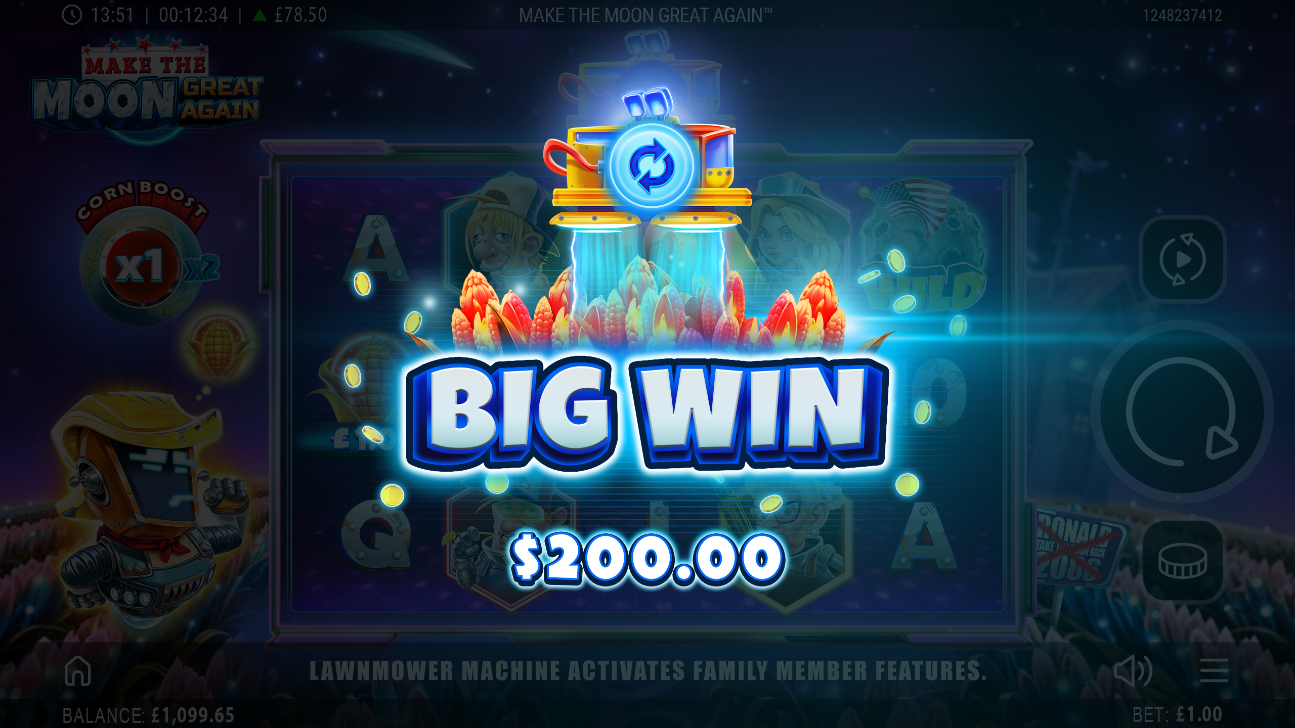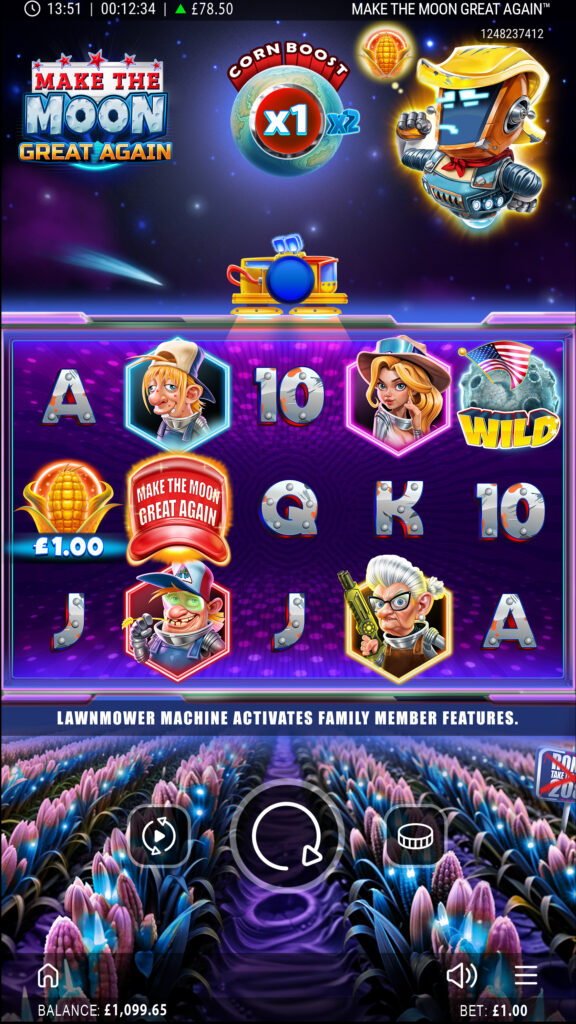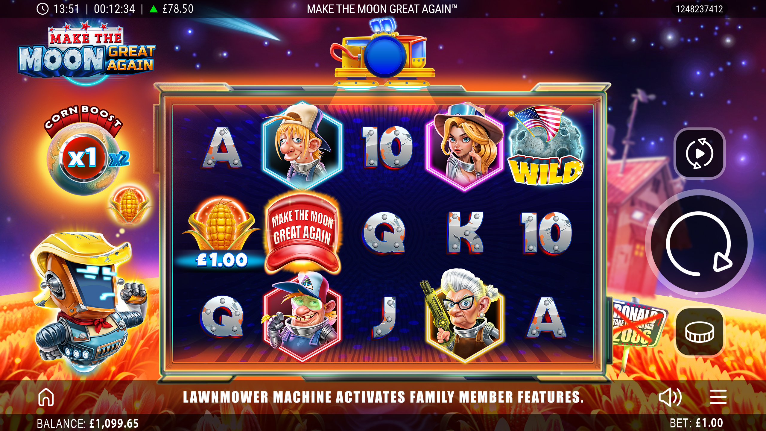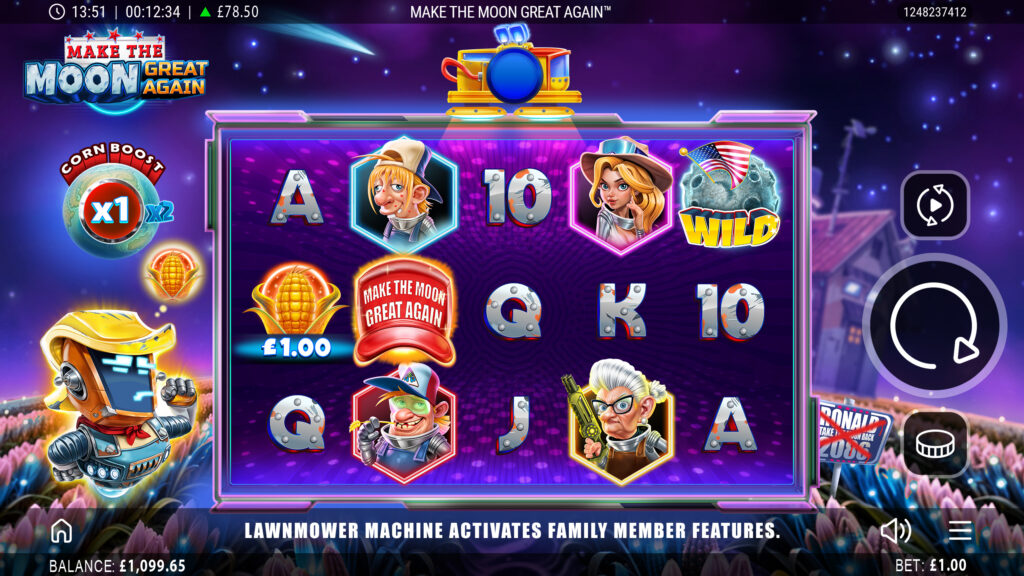 The Harvesters have fled Earth to farm Plasma Crops on the Moon, while poor Ronald the robot battles to keep his battered LawnMower from falling apart. In this offbeat 5×3 slot, the LawnMower sparks into action across the reels, transforming symbols, spawning Wilds and unleashing multipliers. When the Moon trembles, Lunar Wild Bursts scatter up to six Wilds in an instant, reshaping the grid for stellar wins. A well-timed Magnetic Mega Boost can supercharge payouts up to ×15, while Lunar Free Spins launch players into orbit with re-triggers that stack higher and higher. From rickety machines to cosmic jackpots, every spin is packed with suspense, humour and lunar-sized rewards!